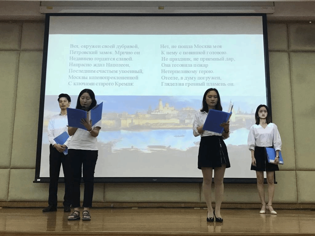 随后,便是最精彩的表演环节。来自各院校的员工们为本届“俄语日”带来了精彩绝伦的表演。员工们采用诗朗诵、电影配音、合唱舞蹈的形式纪念中俄建交70周年,将俄罗斯独特而富有魅力的文化展示给现场观众们。