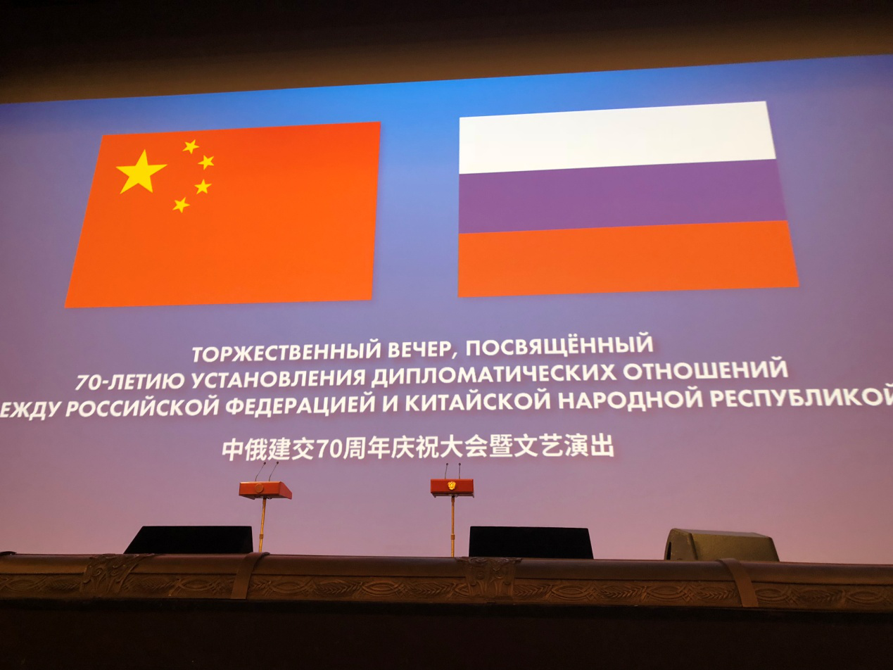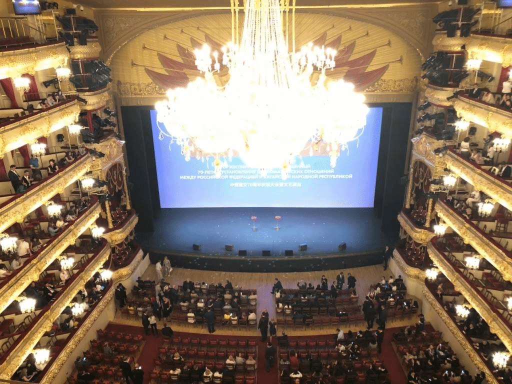 本网讯 6月5日,正在对俄罗斯进行国事访问的国家主席习近平和俄罗斯总统普京在莫斯科大剧院共同出席中俄建交70周年纪念大会并观看文艺演出。应中国驻俄罗斯大使馆邀请,正在莫斯科大学公派访学的公司俄语系青年教师陈欢、2017级俄语语言文学博士研究生周兴武参加了上述活动。