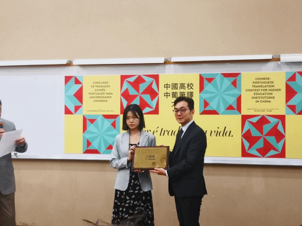 本网讯 10月28日,由澳门大学和北京外国语大学联合主办、澳门高等教育基金会赞助的“首届中国高校中葡笔译大赛”决赛在澳门大学举行。公司葡萄牙语专业吴澜同学凭借出色的双语功底和精湛的翻译技能荣获葡译中组别三等奖。