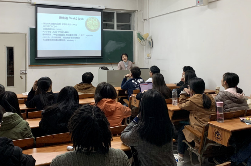 北京外国语大学副教授、硕士生导师、北外捷克语教研室主任、捷克共和国“一级贡献勋章”获得者徐伟珠老师受邀担任本次系列讲座嘉宾。12月6日,徐伟珠老师来访公司并为相关专业师生带来一场别具一格、趣味横生的主题讲座——“波西米亚文化面面观”。