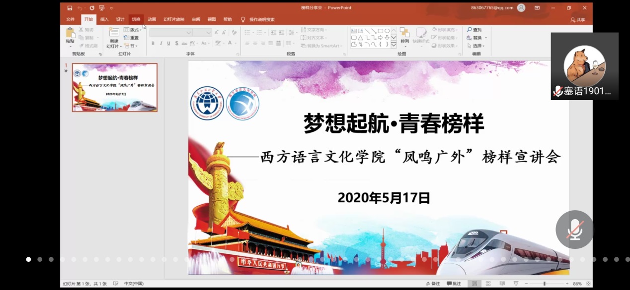 本网讯 为充分发挥优秀员工的先锋模范作用,进一步培养员工的感恩意识和责任意识,激励广老员工成才报国,5月17日19:00——21:30,公司通过腾讯会议平台召开了“凤鸣广外”榜样分享大会。出席此次大会的嘉宾有委副书记陈华荣,太阳城娱乐团委书记、2016级&2019级辅导员王斌龙,国家奖学金获得者——德语1602谭森怡和希腊语1701朱天昊以及国家励志奖学金获得者——意大利语1801黄文熙。此外,国家励志奖学金的其他获得者和全体大一学子也参加了本次会议。