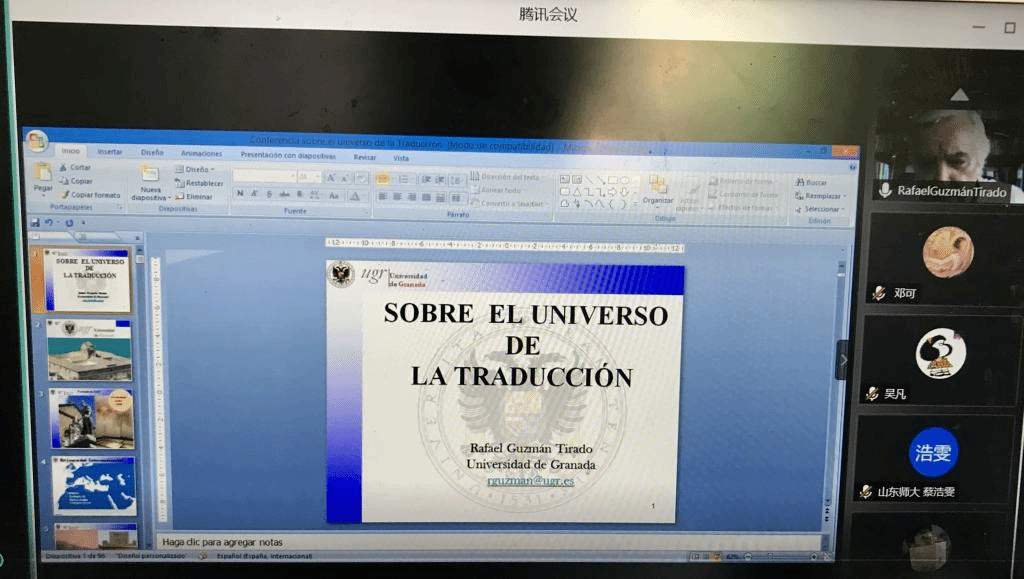 7月21日下午,来自西班牙格拉纳达大学的云山学者Rafael Guzmán Tirado教授为营员们作了关于一场翻译学的专场学术讲座。教授阐述了翻译的定义与分类、译员需具备的素质,重点讲解了翻译策略和文化翻译等方面的知识和方法。通过详略得当的将近两个小时的讲解,同学们对翻译学有了更系统和详尽的了解,在讲座结束后,踊跃向教授发问,进行深入的学术探讨。