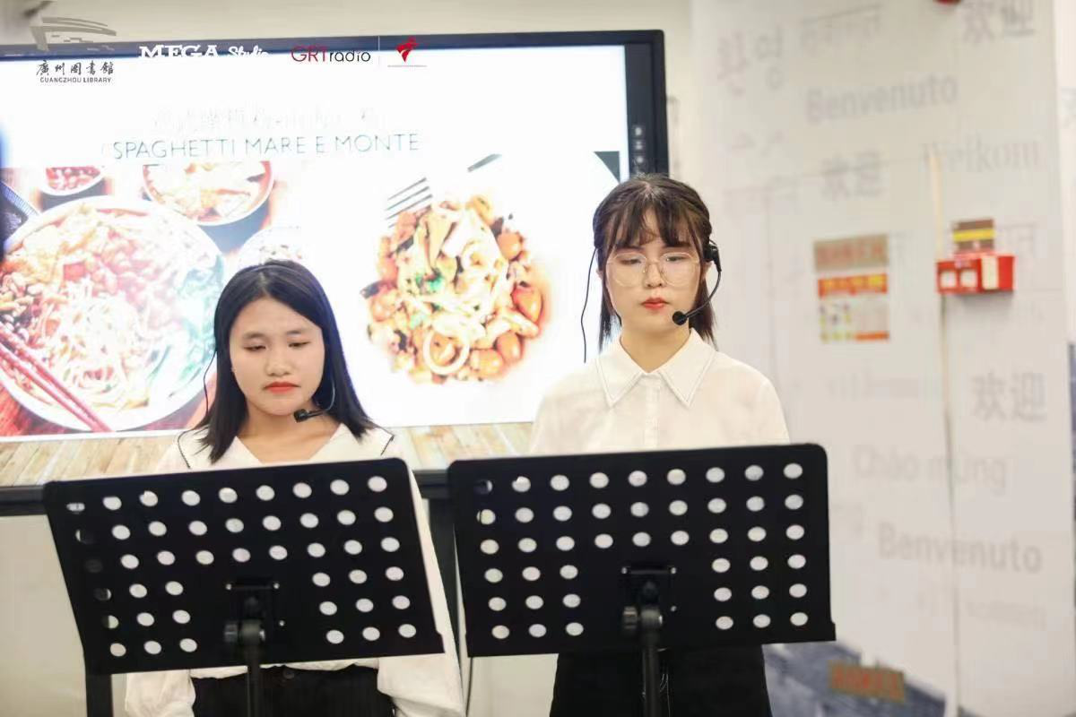 活动现场除了广外意大利语系老师的精彩讲解,还有意大利语系学子周椿敏、张海琦为大家带来的乌尔比诺方言及标准意大利语朗诵,让听众能够直观地感受到拉斐尔的语言,丰富了听众的感官认识。