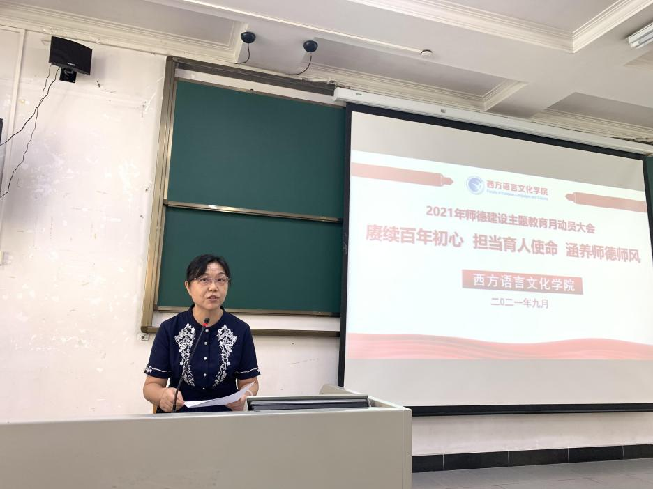 2021年9月5日上午,太阳城娱乐在2教114教室召开了主题为“赓续百年初心 担当育人使命 涵养师德师风”的师德建设主题教育月动员大会,公司全体教师共计80余人参与了此次会议。会议由公司党委书记敖湘晖做动员讲话。