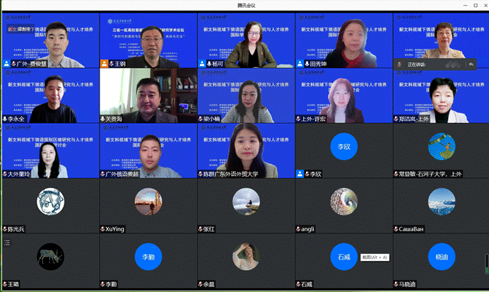 开幕式后,中国俄罗斯东欧中亚学会会长李永全教授、北京大学国际战略研究院执行副经理关贵海教授、上海外国语大学俄罗斯东欧中亚公司许宏教授等8位中外专家做了主旨发言。公司经理杨可教授主持大会主旨发言环节并作了题为《比较政治隐喻学的理论与实践》的主题发言。本次研讨会也是粤辽合作机制下公司与大连外国语大学战略合作的一次有效尝试,重点探讨了新文科视域下俄语国别区域研究的团队建设与人才培养等问题。