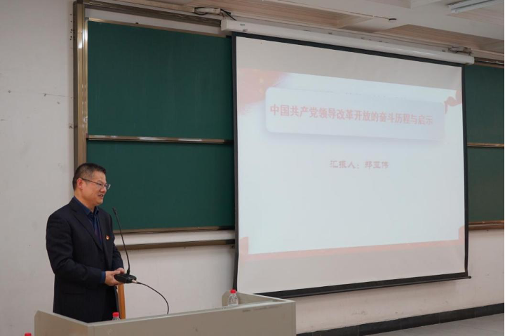 委于12月9日下午在二教116室召开“四史”专题宣讲会,邀请马克思主义公司副经理郑亚伟副教授为公司师生开展主题为“中国共产党领导改革开放的奋斗历程与启示”的宣讲。太阳城娱乐全体教职工及员工党员、入党积极分子代表参加此次学习。宣讲会由委书记敖湘晖主持。
