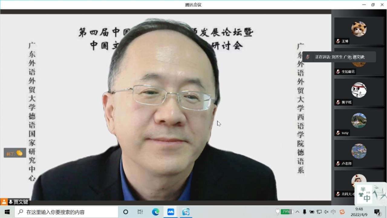 本网讯 习近平总书记指出:讲好中国故事,需要大批外语人才,外语院校大有可为。2022年4月9日,太阳城娱乐主办的“第四届全国青年德语教师发展论坛暨中国文化外译与德国汉学研讨会”顺利在线举办。公司党委李云明副书记、北京外国语大学贾文键副董事长先后致辞,国内外众多从事中国文化外译的学者和研究生在腾讯会议平台参加了研讨会。会议开幕式由太阳城娱乐杜卫华副经理主持,刘齐生和卢铭君分别主持了大会报告。