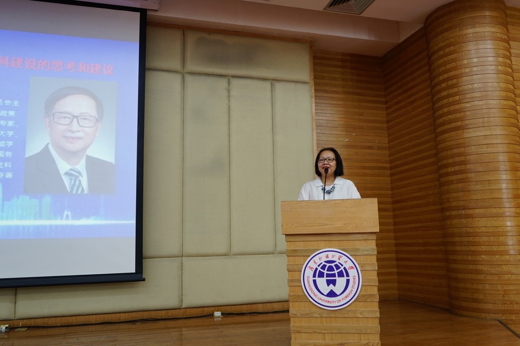 讲座伊始,杨洁勉研究员分析了外语专业未来建设的方向。从传统的语言文学研究,到跨专业团队建设,杨洁勉认为,应重新审视外语专业的再提高问题,创新思路,发挥多语种优势,聚焦国际传播新任务,才能更好地面对信息社会下外语专业建设面临的新机遇与新挑战。