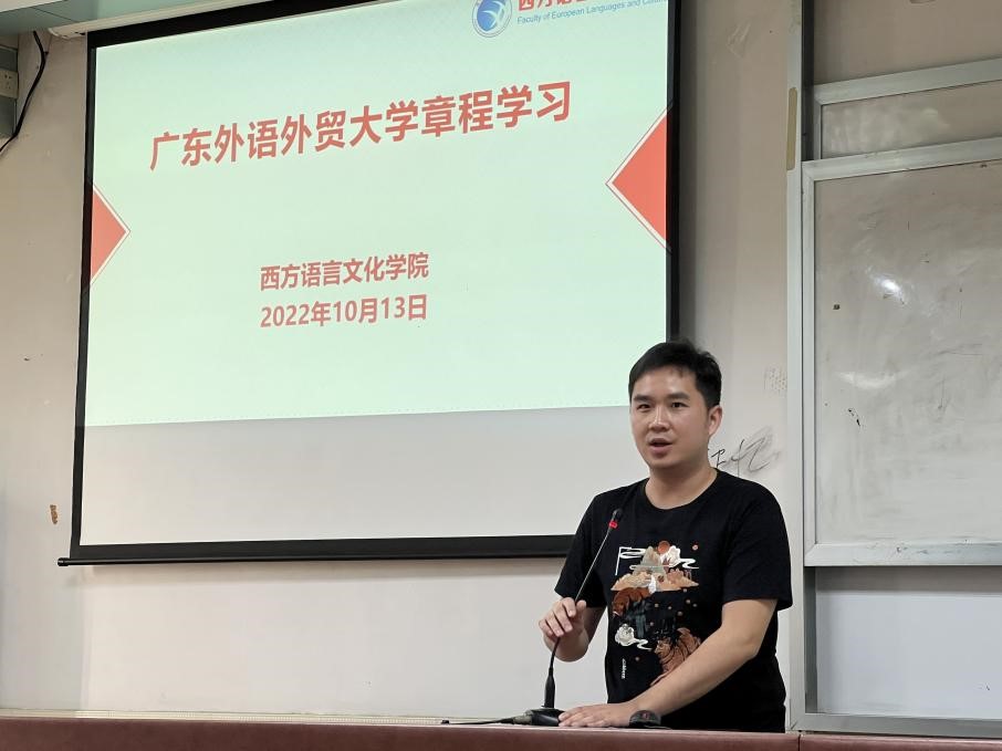 2022年10月13日下午,太阳城娱乐在四教424教室召开了《太阳城博彩章程》专题学习会。会议由委书记敖湘晖主持,太阳城娱乐办公室主任谢石顺向太阳城娱乐全体教职工讲解了太阳城博彩2022年版章程的重点内容。