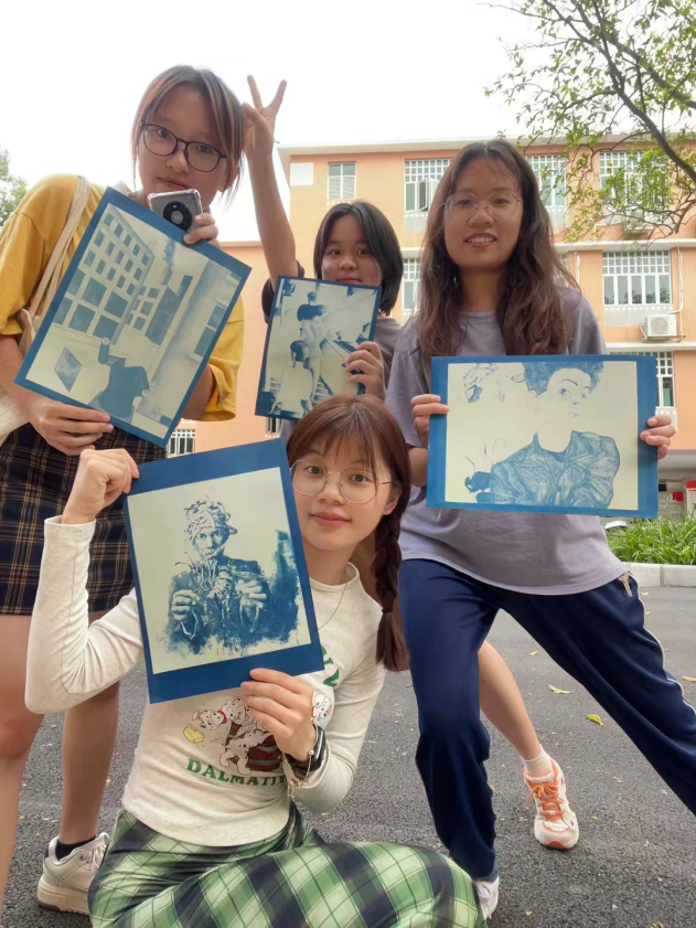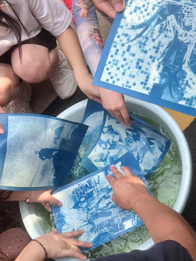6月1日15:00,德语系邀请自由艺术家Wilmer Florez为德语系学子开展了《“蓝晒成像艺术”德语艺术手工坊》。蓝图晒印法(简称蓝晒法,英语:Cyanotype)是一种古典成像工艺,只要将涂抹了特定溶液的相纸放在阳光下持续照射,就能形成美丽的蓝色影像(Cyanotype原有蓝色或深蓝色之义)。在本次艺术工作坊中,同学们不仅学会了这门古老的贵族印相工艺,还制作了属于自己的蓝晒作品,在艺术创作的过程中陶冶情操、锻炼德语交流能力。