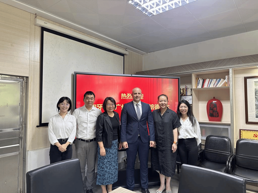 2023年10月12日上午,匈牙利驻广州总领事华培德(Péter Várfi)来访公司,委书记王秀民、经理杨晓敏、副经理陈星、公司办公室外事秘书左尚君、匈牙利语教师王梦圆会见来宾。双方就匈牙利语专业建设、人才培养、外教聘用、国际合作等事宜进行会谈。