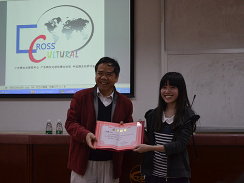 暮春三月,江南草长,杂花生树,群莺乱飞。本学年度首次研讨会在掌声中拉开序幕。会前,论坛博士生委员会主席林凡同学致简短欢迎辞并宣布西班牙语专业11级本科生周媛荣获本博士论坛“LOGO设计大赛”一等奖,其设计的LOGO被成功采纳。随后,周同学简要介绍了其作品的设计理念,对此,郑立华经理给予了高度评价,并为其颁予证书和奖金。